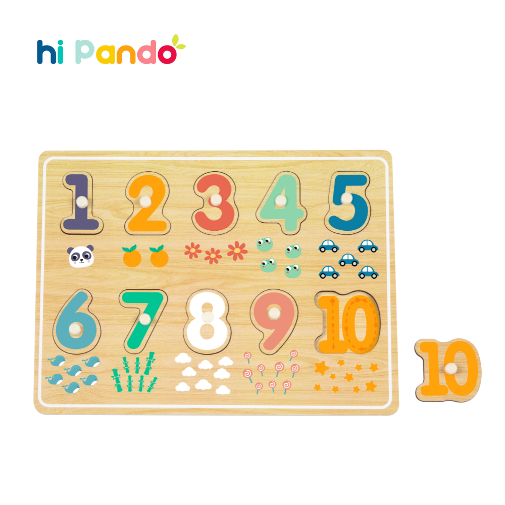 This colourful wooden number puzzle is designed to captivate young learners while developing essential early math skills. Featuring thick, chunky number pieces, ranging from 0 to 9, each number is vibrantly coloured and often paired with fun illustrations, like apples or dots, to visually connect numbers with counting. The puzzle board includes corresponding slots for each number, helping children practice number recognition, matching, and sequencing. Perfect for improving hand-eye coordination, fine motor skills, and a strong foundation in early mathematics, this puzzle is a wonderful tool for learning through play.