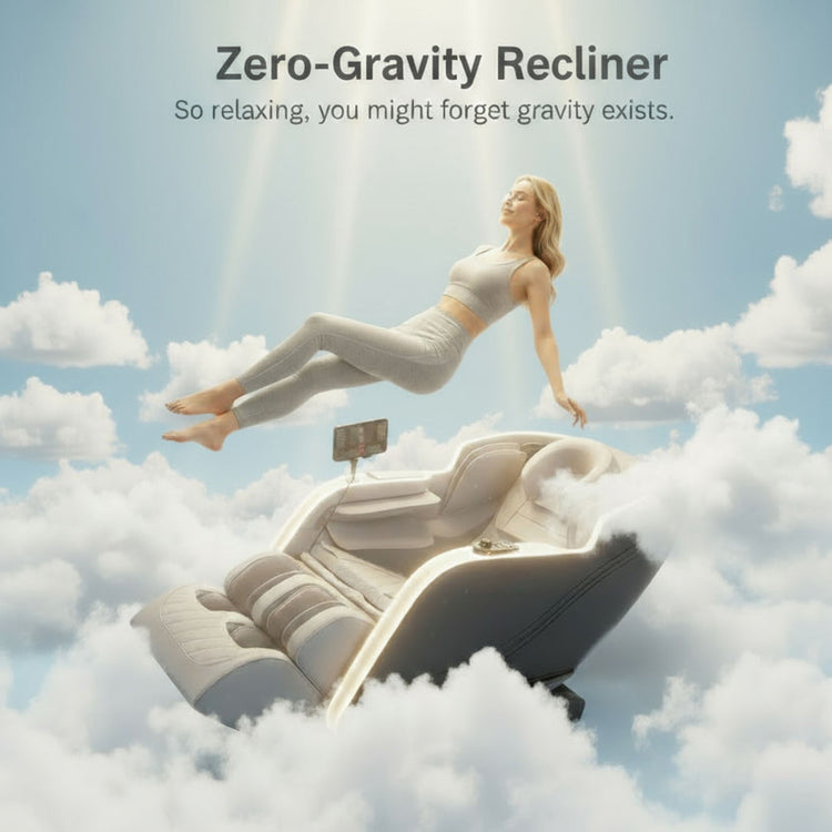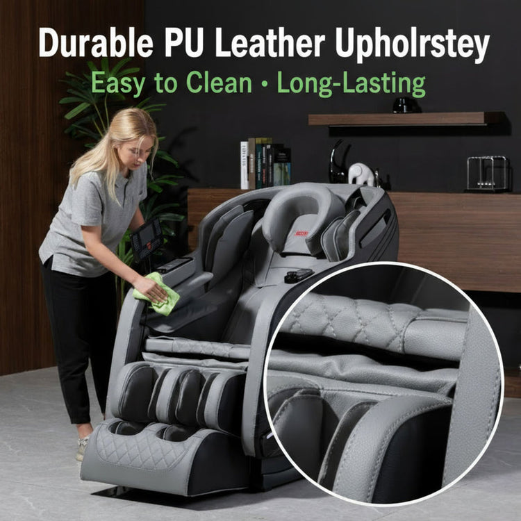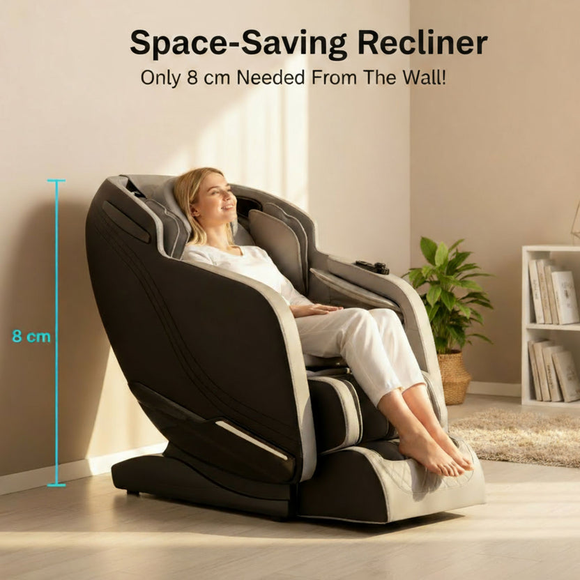 The AI Massage Chair Model VD-8300 Pearl White gives you a full body massage experience in a clean gray and white finish.