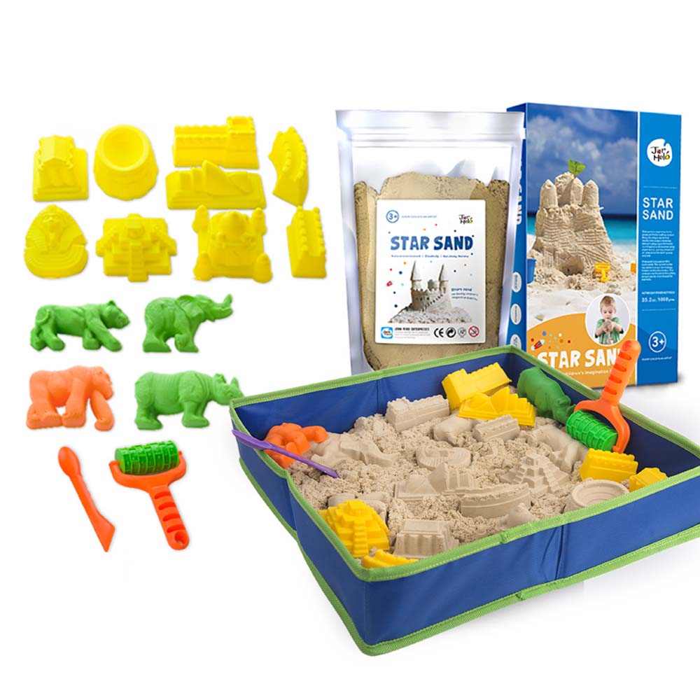 This sand flows and shapes just like wet sand, but leaves your hands and surfaces completely dry and mess-free. Playing with this super sand is a magical, soothing and relaxing experience for both young and old.