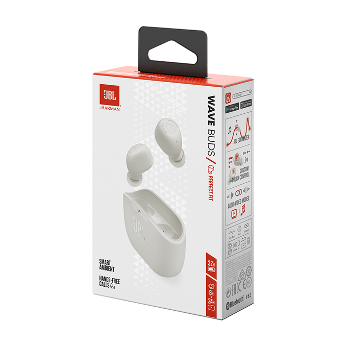 Bring your sound everywhere. With bass you can feel, up to 32 total hours of battery life, and a secure, comfortable bud design, the splash and dust resistant JBL Wave Buds are designed for your daily entertainment. Whether you're roaming city streets or relaxing on the beach, your hands-free stereo calls will always be crystal clear, while Smart Ambient technology keeps you aware of your surroundings. And when you need an extra boost, you can speed charge two additional hours of power in just 10 minutes.