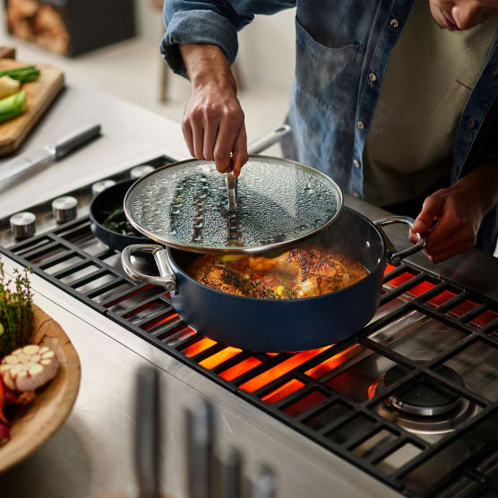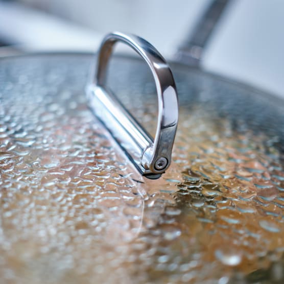 - Select pans include tempered glass lids for added convenience