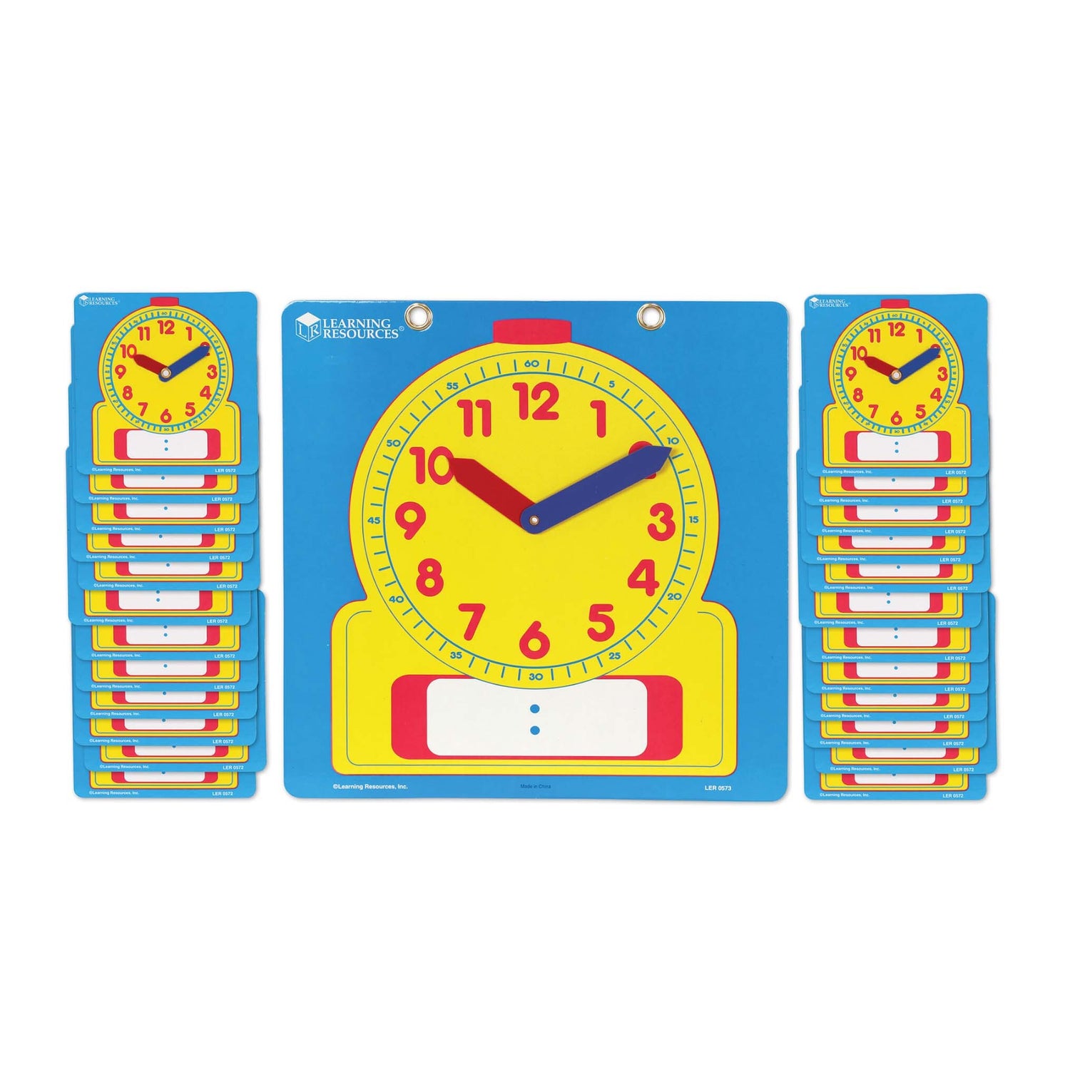 These laminated write & wipe clocks feature movable plastic hands and a place to write in the digital time. Ideal for introducing primary numeracy classes to the concept of time these student clocks measure 11cm square while the demonstration clock measures 30.5cm square.