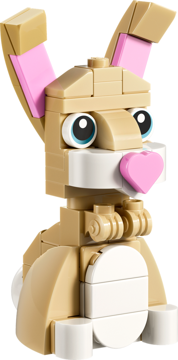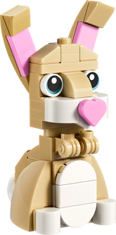 Cute Easter Bunny 30716 LEGO Creator building set for quick and easy builds that bring instant joy. This Easter, delight kids aged 6 and over with a LEGO® playset featuring a Cute Easter Bunny with posable long ears, plus 3 colourful Easter eggs and a carrot.