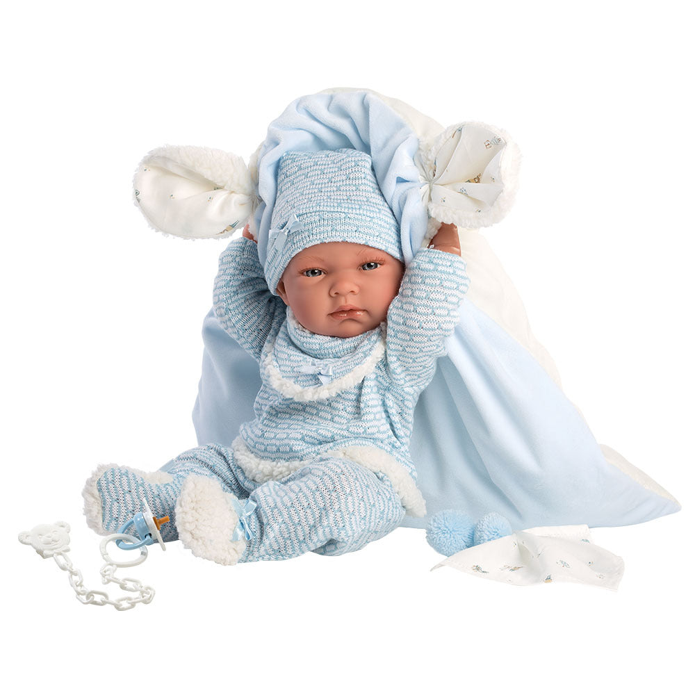 Nico is a charming newborn baby doll who wears a pretty blue outfit and includes a matching, multi-functional comforter/cushion which he loves!