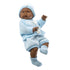 Noe wears a blue outfit with a matching hat - he is as cute as can be!