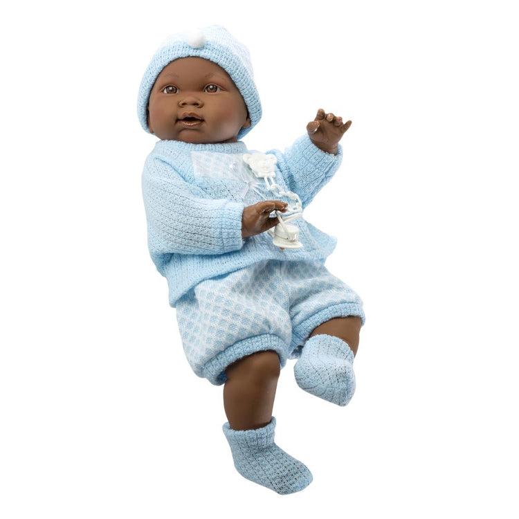 Featuring a vinyl body, Noe can enjoy bath time with you! He is also articulated allowing him to lay down, sit, wave his arms and kick his little legs!