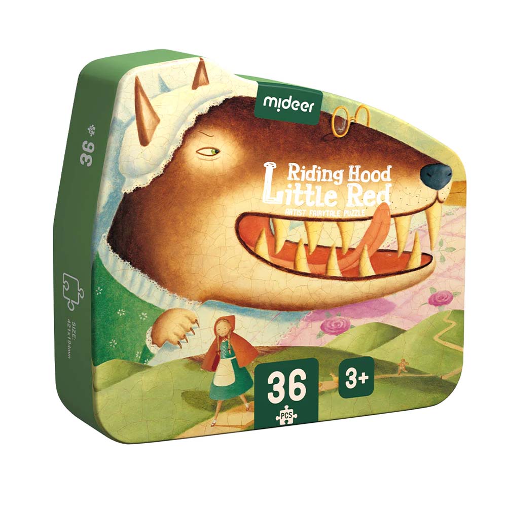 This particular puzzle is themed around "Red Riding Hood" inviting children to piece together scenes from this beloved fairy tale. With its uniquely shaped packaging, it makes for an irresistible and memorable gift choice for any young puzzler or fairy tale enthusiast.