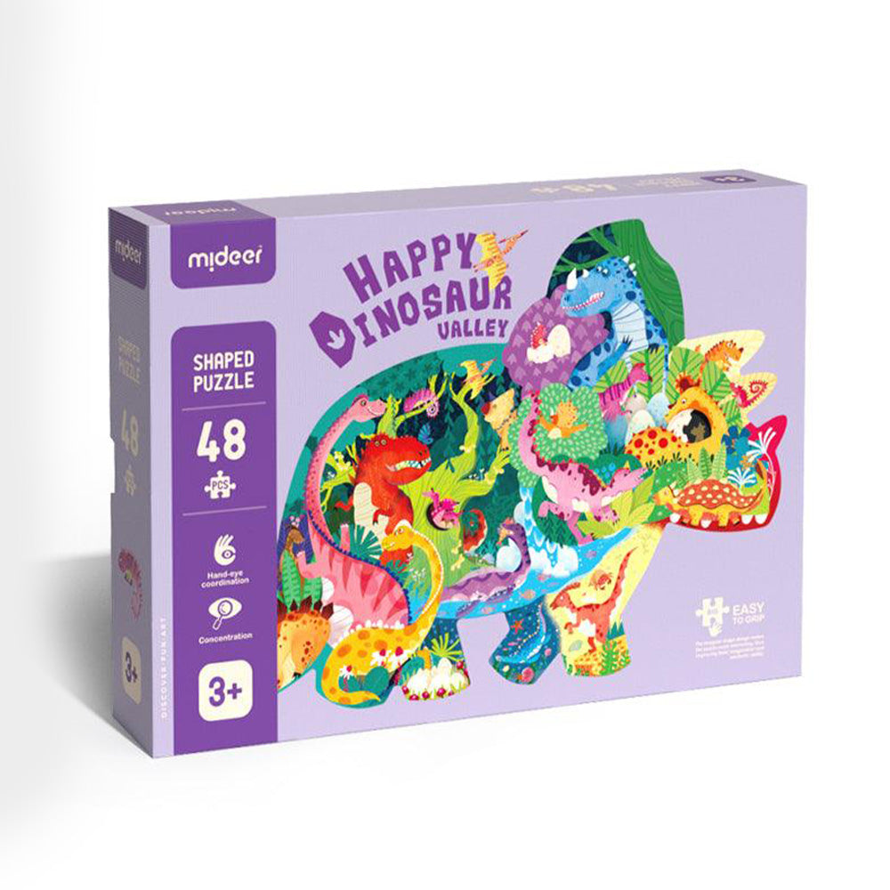 Embark on a prehistoric puzzle adventure with Mideer's Happy Dinosaur Valley! This set includes 48 vibrant pieces forming a dynamic dinosaur scene. Shaped like a colossal dinosaur, it's filled with colourful prehistoric creatures.