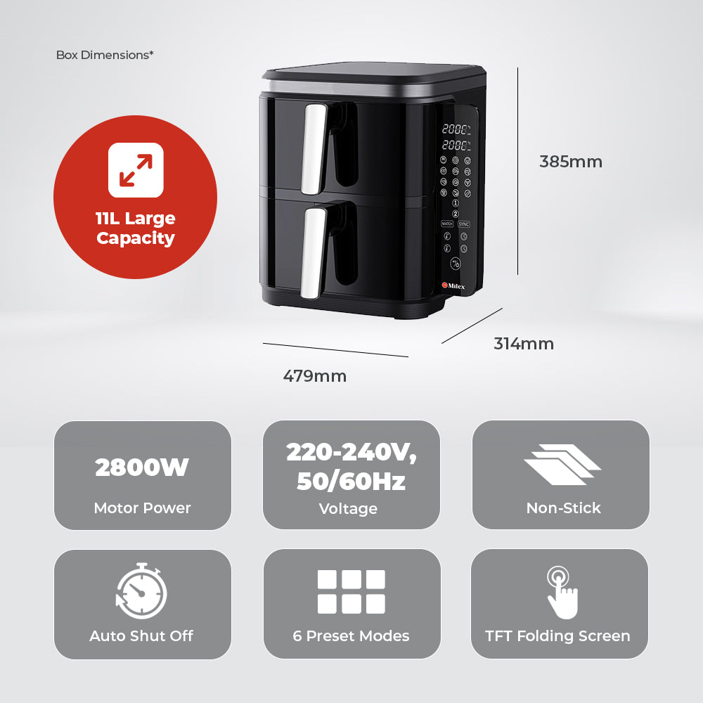 Milex 11L Double Stack Air Fryer – Healthier Cooking, Bigger Capacity