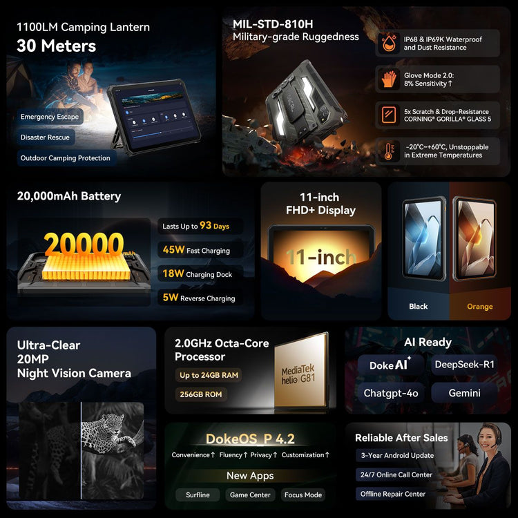 OSCAL Spider 10 Rugged Tablet 11 FHD, Android 15, 24GB RAM, 256GB ROM