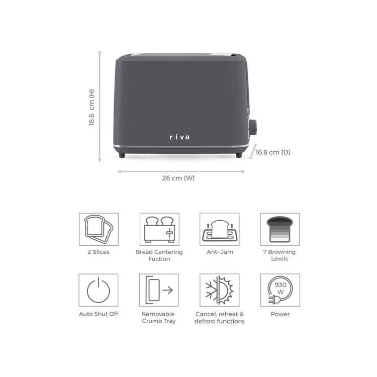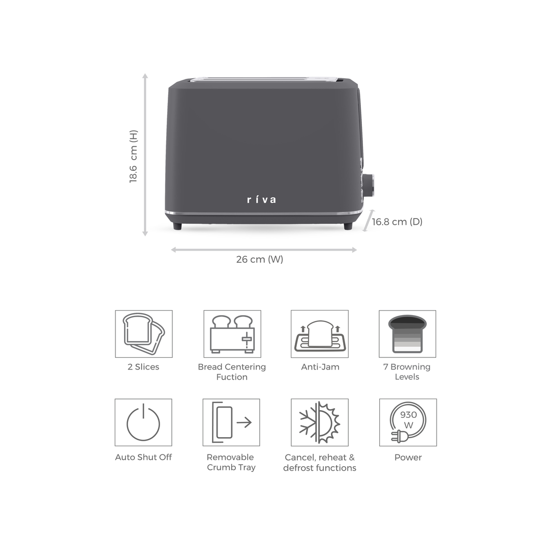 Riva Cool Touch Toaster 2-Slice Coal Grey RVGT001