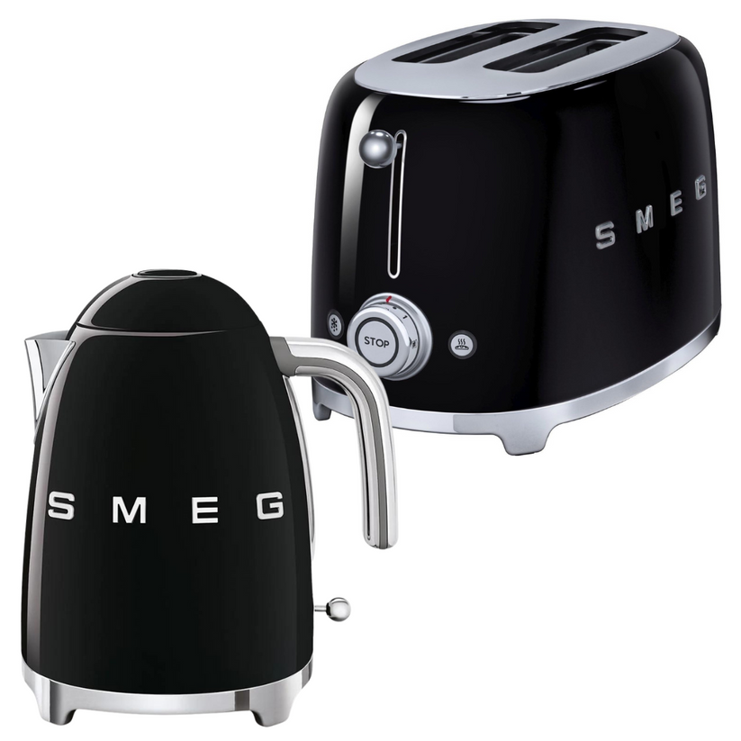 Smeg Retro 1.7l Kettle & 2 Slice Toaster Black Combo KLF03BLSA + TSF01BLSA
