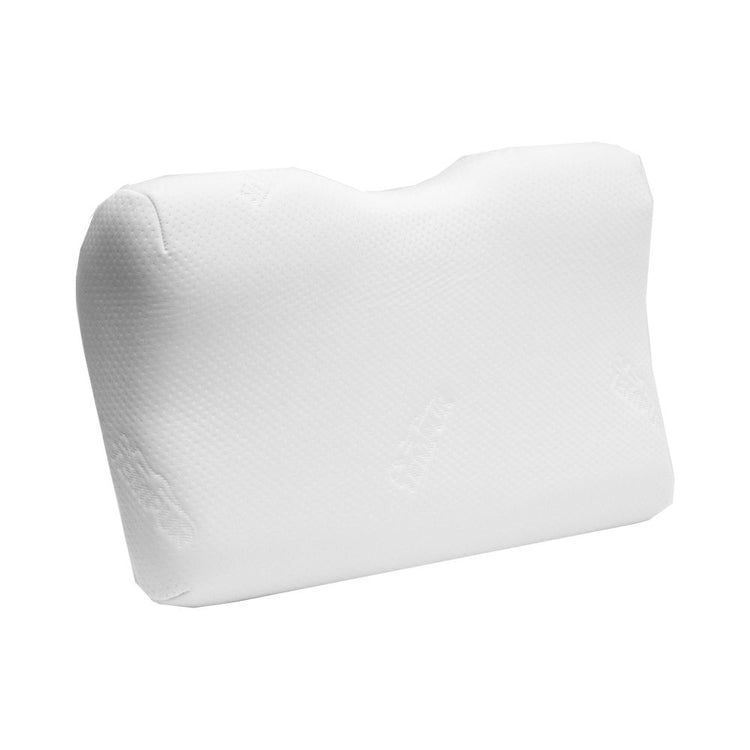 Designed with a curved edge and centered notch that precisely encloses and supports your neck. The front edge of this pillow tilts slightly forward and helps provide correct neck alignment.
