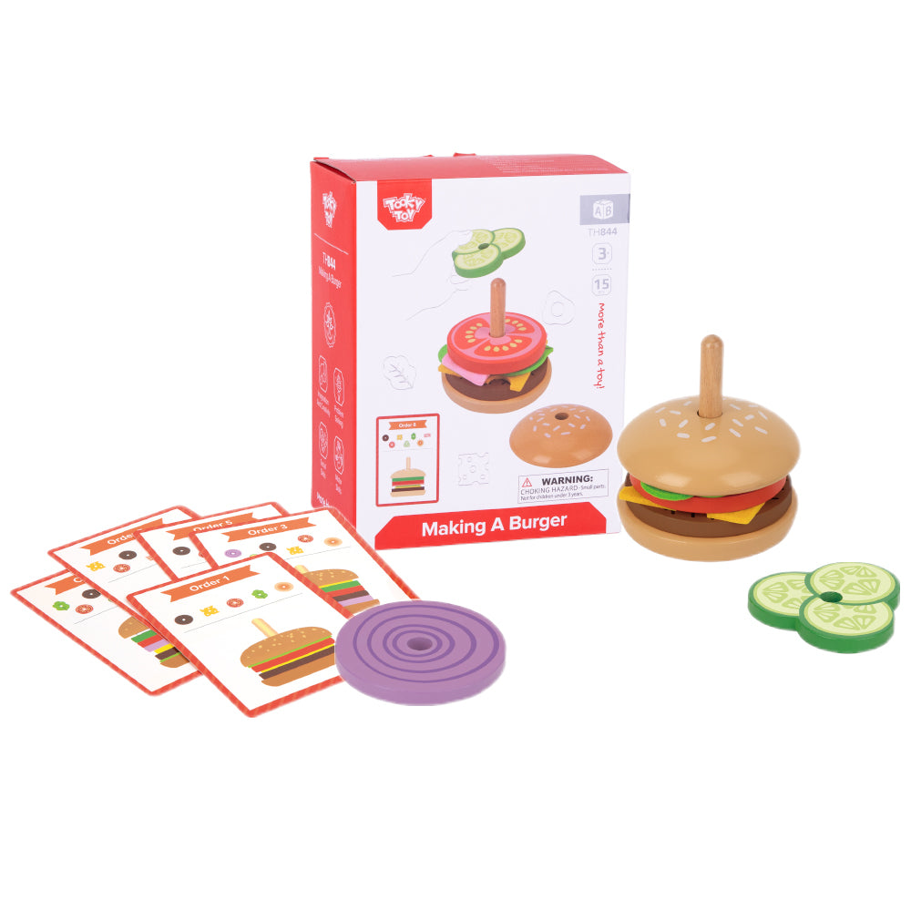 Open up your very own burger shack with TookyToy's wooden Making-a-Burger Set!