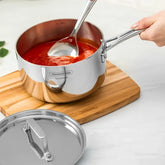 Add elegance and efficiency to your kitchen with the Grano Stainless Steel Saucepan with Lid. Its advanced tri-ply construction ensures faster cooking and lasting warmth, all wrapped up in a sleek, stylish design.